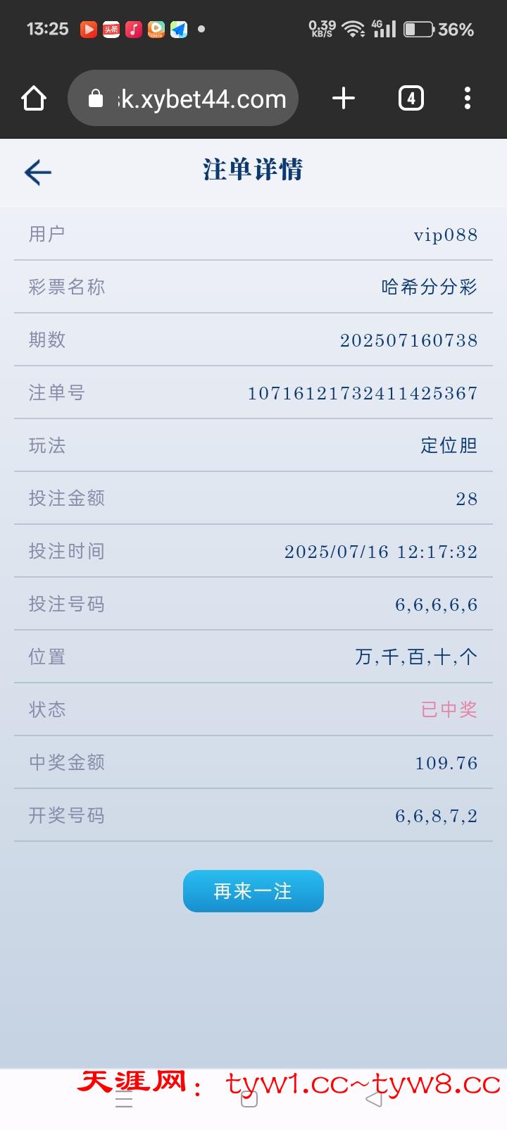 建议大家 玩时时彩定位胆 万千百十个都买一个号五位数开一个号都中奖。比如那期我买的五位都是6  只要开一个就中50几块 开两个6就是两个50多块