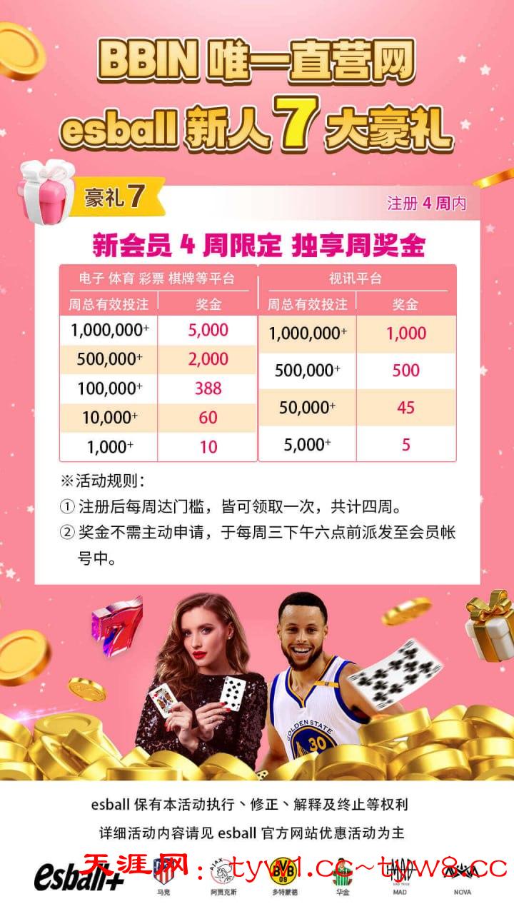 【注册四周内】每周享有新手流水任务,额外赠金!