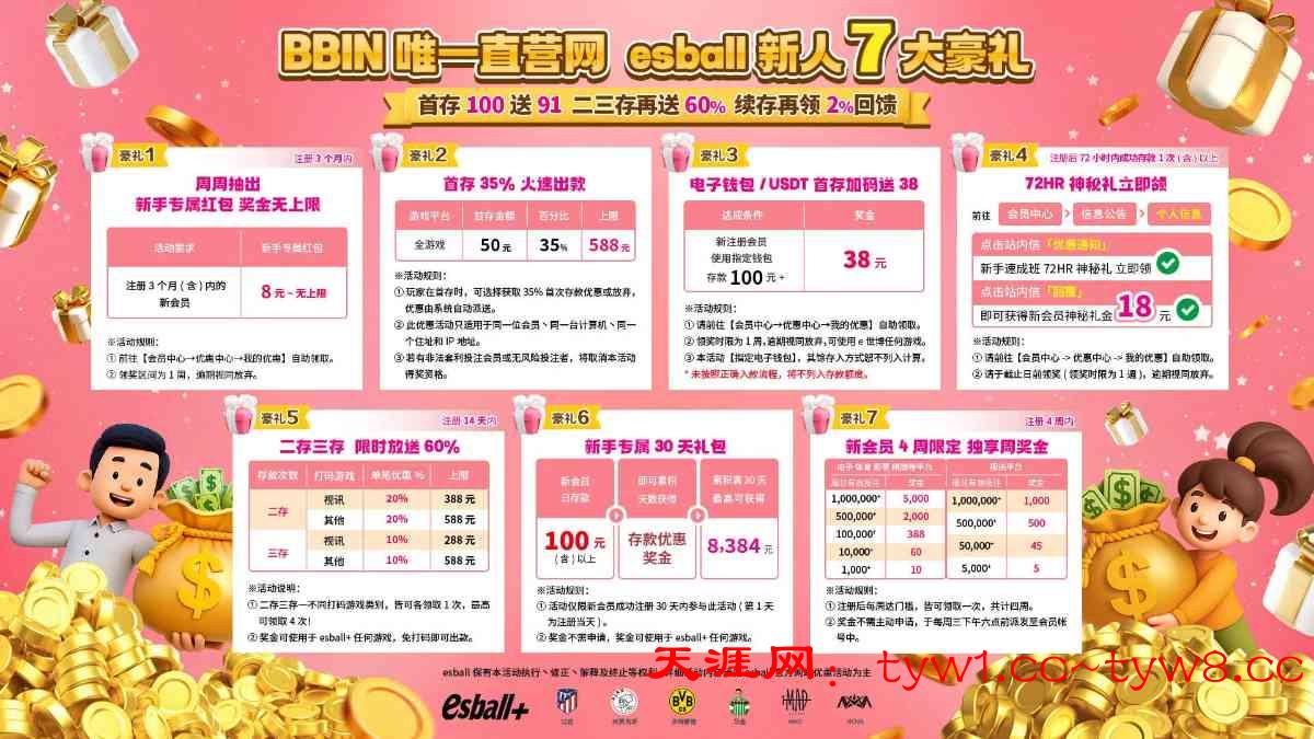 凡新注册会员,使用指定钱包,首次入款100元以上,即可获得奖金38元