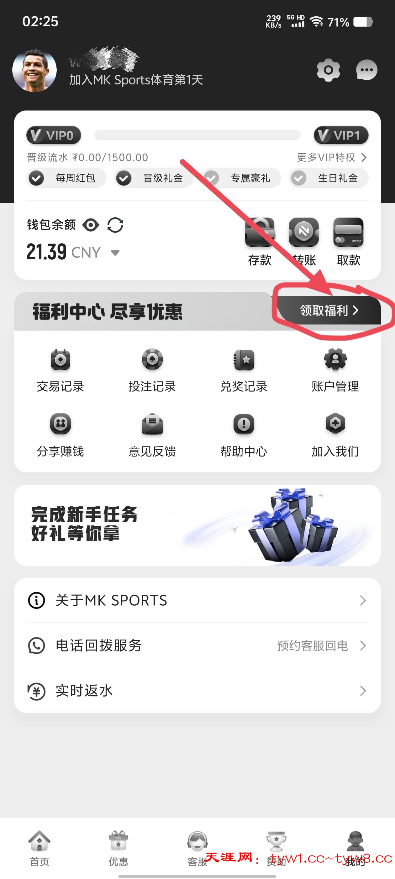 ↓手机号和银行卡任务奖励是在福利中心领取