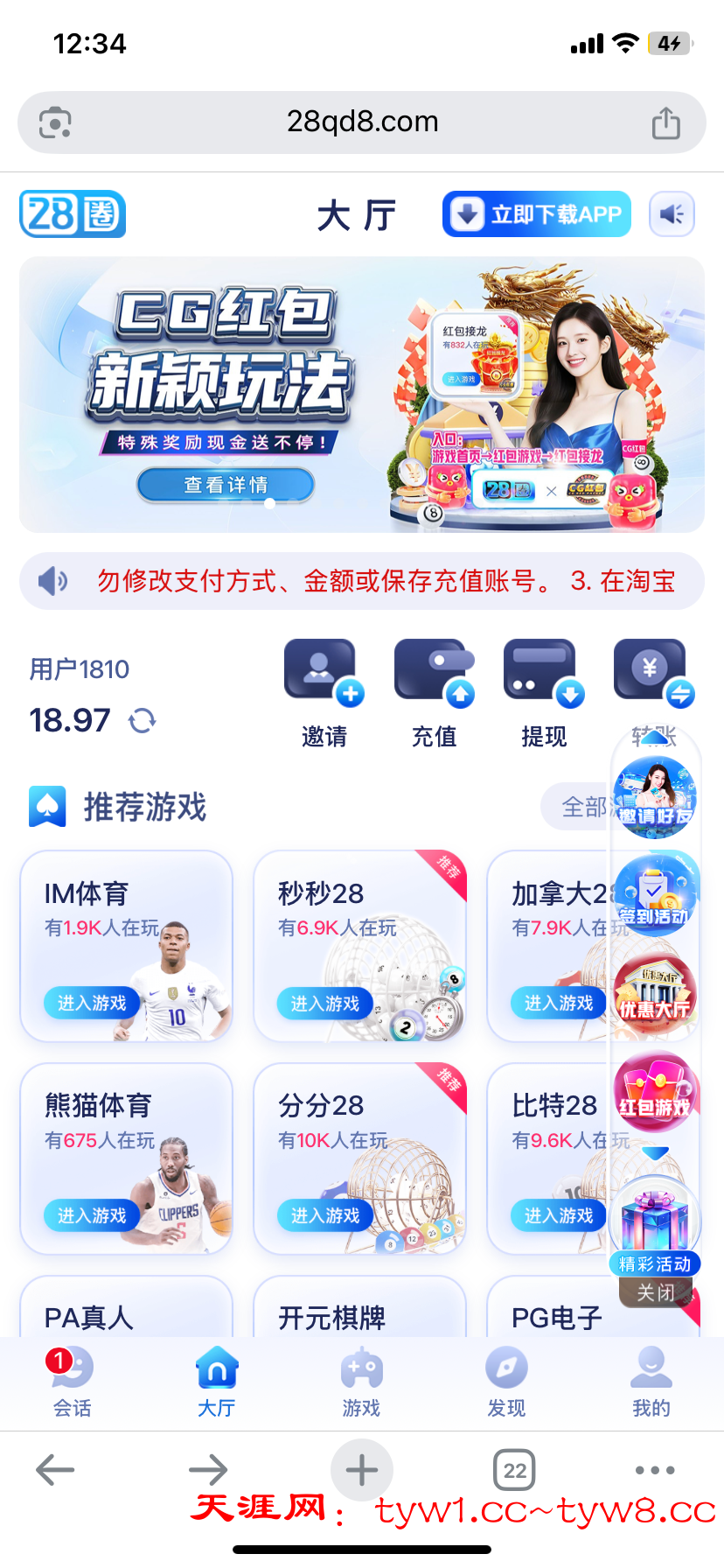 之前注册cg钱包送了18的老哥现在可以冲28系列台子了