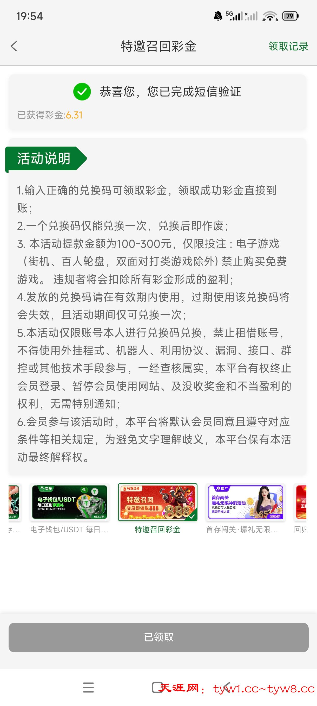 星光娱乐电话召回,可以去碰一下,在优惠-综合-特邀召回里面,我领了6快多,打了400多流水,最多打到90  就是上不去100,没提到