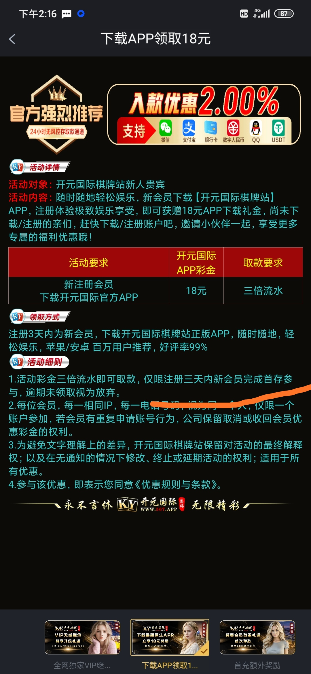 这个台子好像是特邀短信送的18 送的没打出来后面充值干出来几百 可以尝试注册看能不能碰瓷到 或者只能等特邀了 ps,不提倡大家充值干 白嫖不会有损失