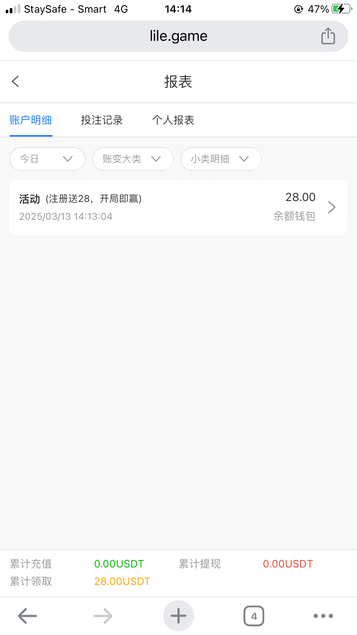 亲,首次在我们平台注册完成以后,系统判定您是首次来我们平台的客户,系统会自动为您赠送28的新人彩金 审核时间1-10分钟如您注册绑定半年以上提款账户完成以后没有收到28彩金,那就是系统检测到您已经有在平台注册过,或者您使用的ip已经有人来注册过,或您绑定的提款(汇旺,ABA,USDT地址) 没有超过半年以上,导致您无法领取新人奖励哦您可以参加我们首存到五存的活动,赠送10%-15%,8倍流水.