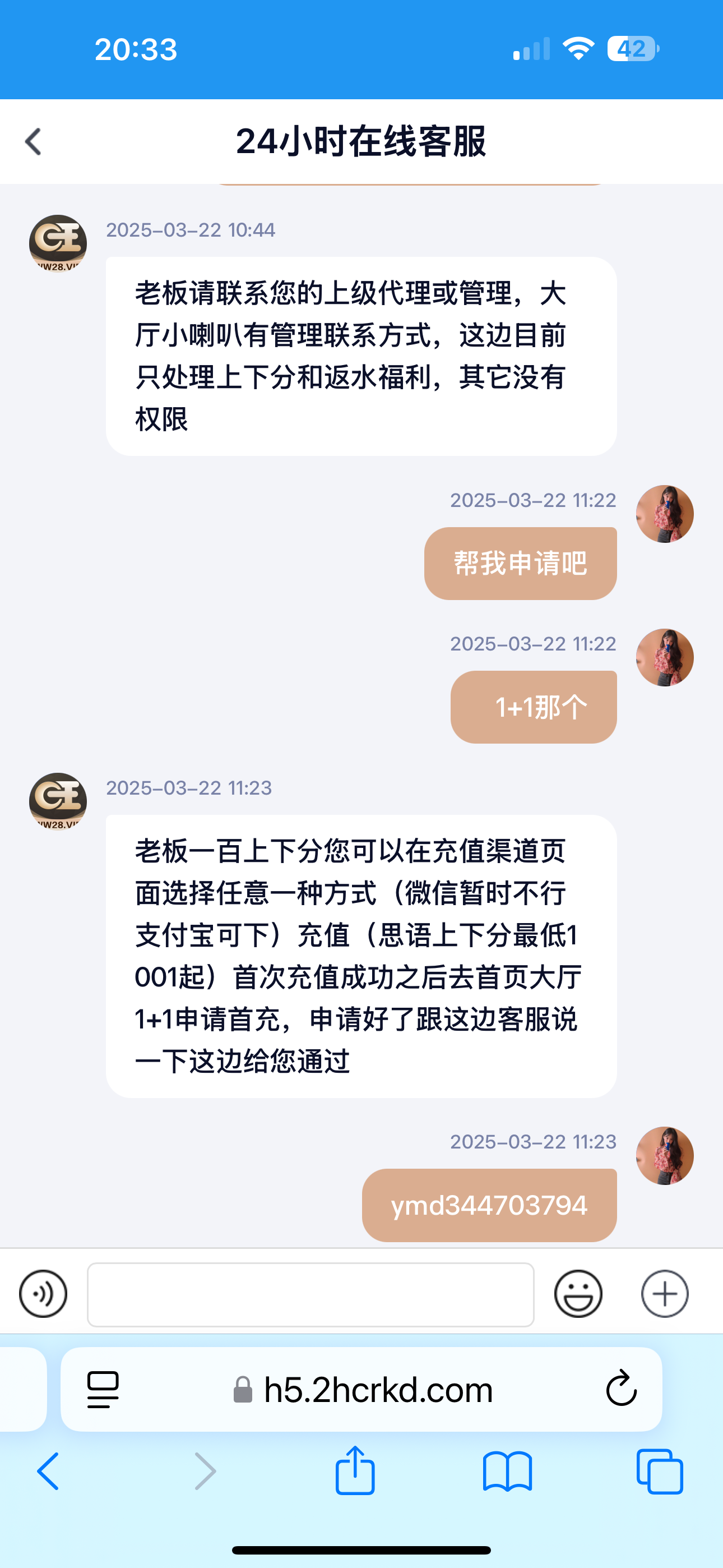 充值了  优惠里面申请  了然后找客服审核一下 秒通过