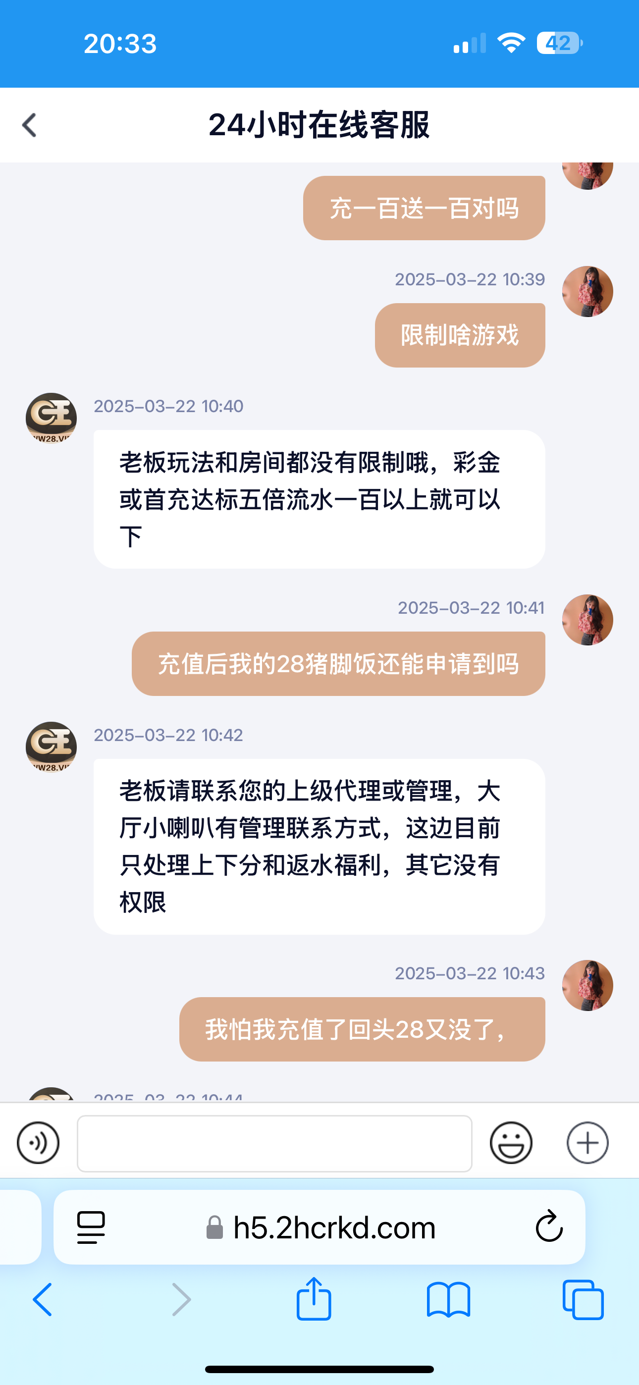 好歹咱也是实实在在的充值的会员都不止首存2存我都干了,这种会员难道不值得领个28的猪脚饭安慰下吗就因为我支付宝绑定的手机号跟注册的不一样,开门做生意规矩是死的人是活的,这点彩金说白了你们就是送了能调杀率点杀我都认,主要是这点彩金都看不开,让别人怎么玩,不充值的都得了充值的因为一些小事不送了,换做是你你咋想