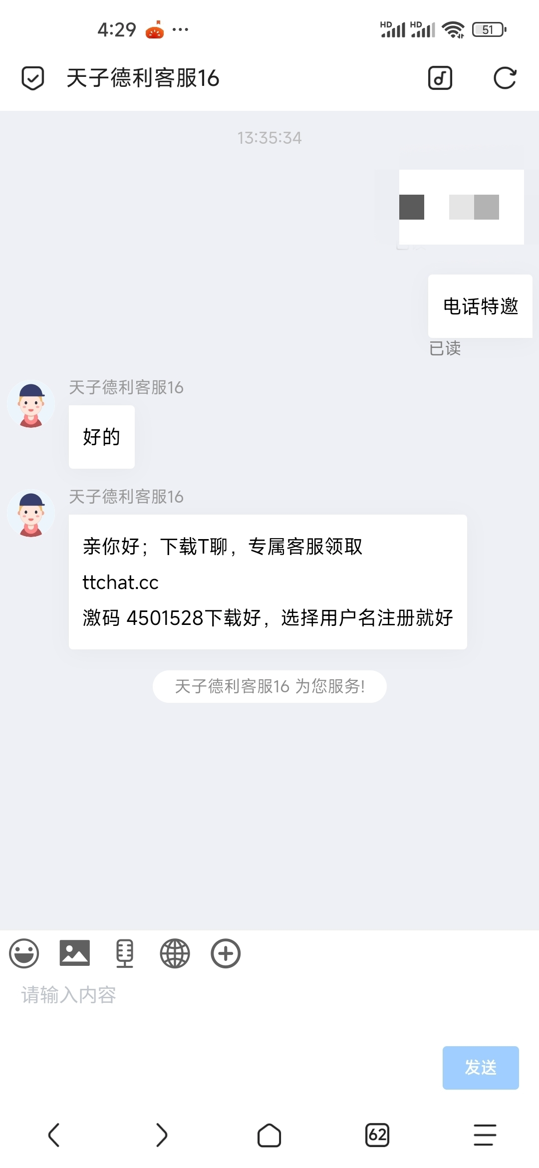 进去是客服界面,进去说电话特邀,报手机号