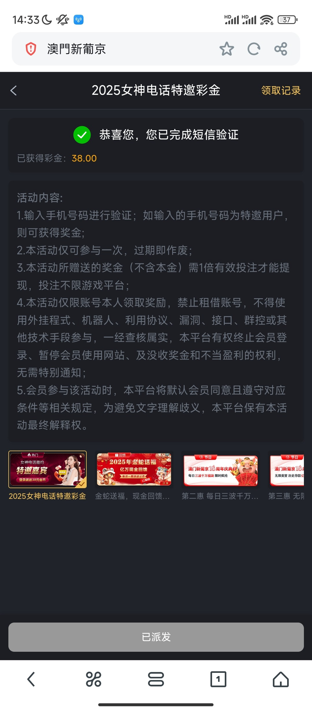 要存款打38流水才可以领这38   不黑  提款过