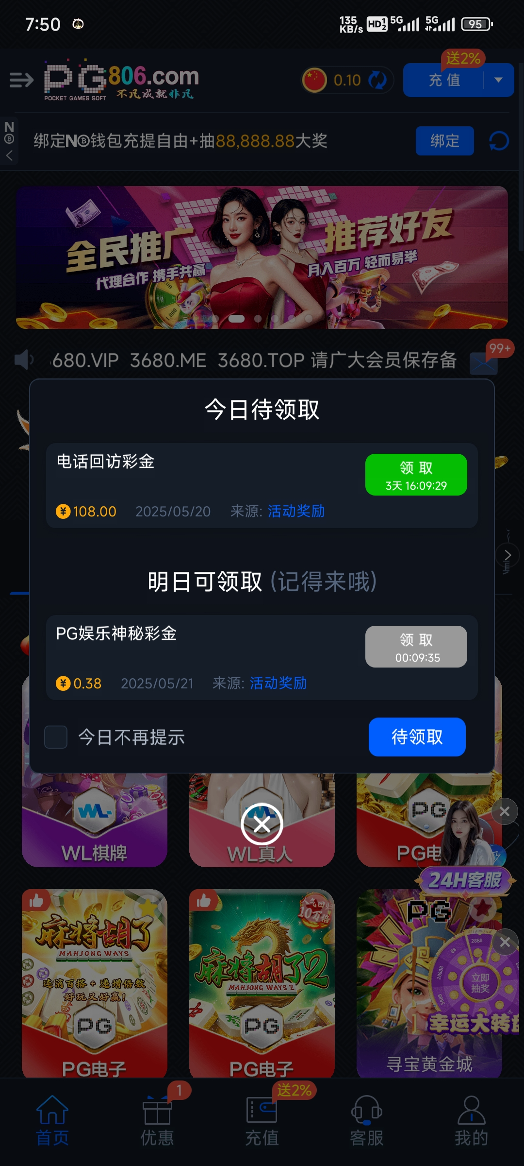 【PG3680】—✅—电话彩金108