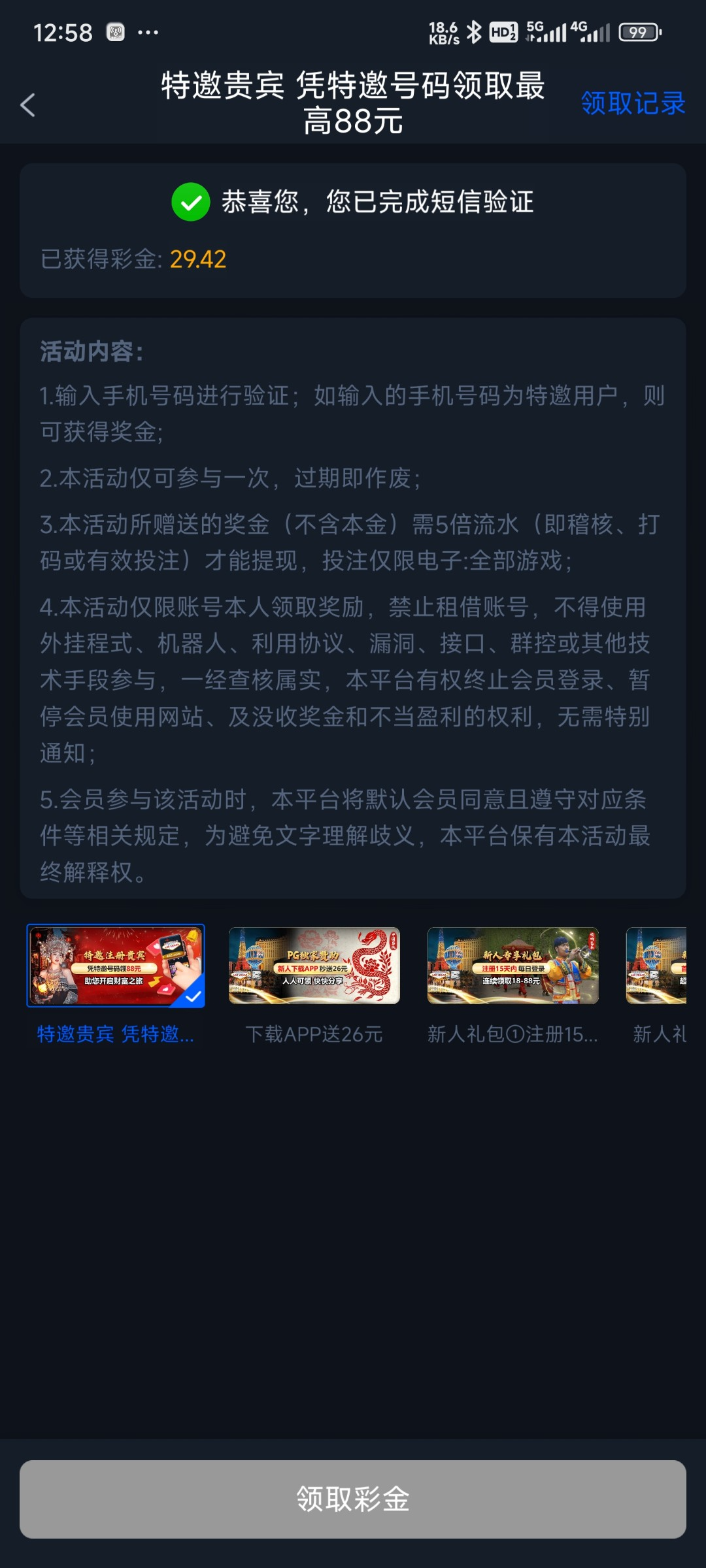 电话特邀28-88我领取到29