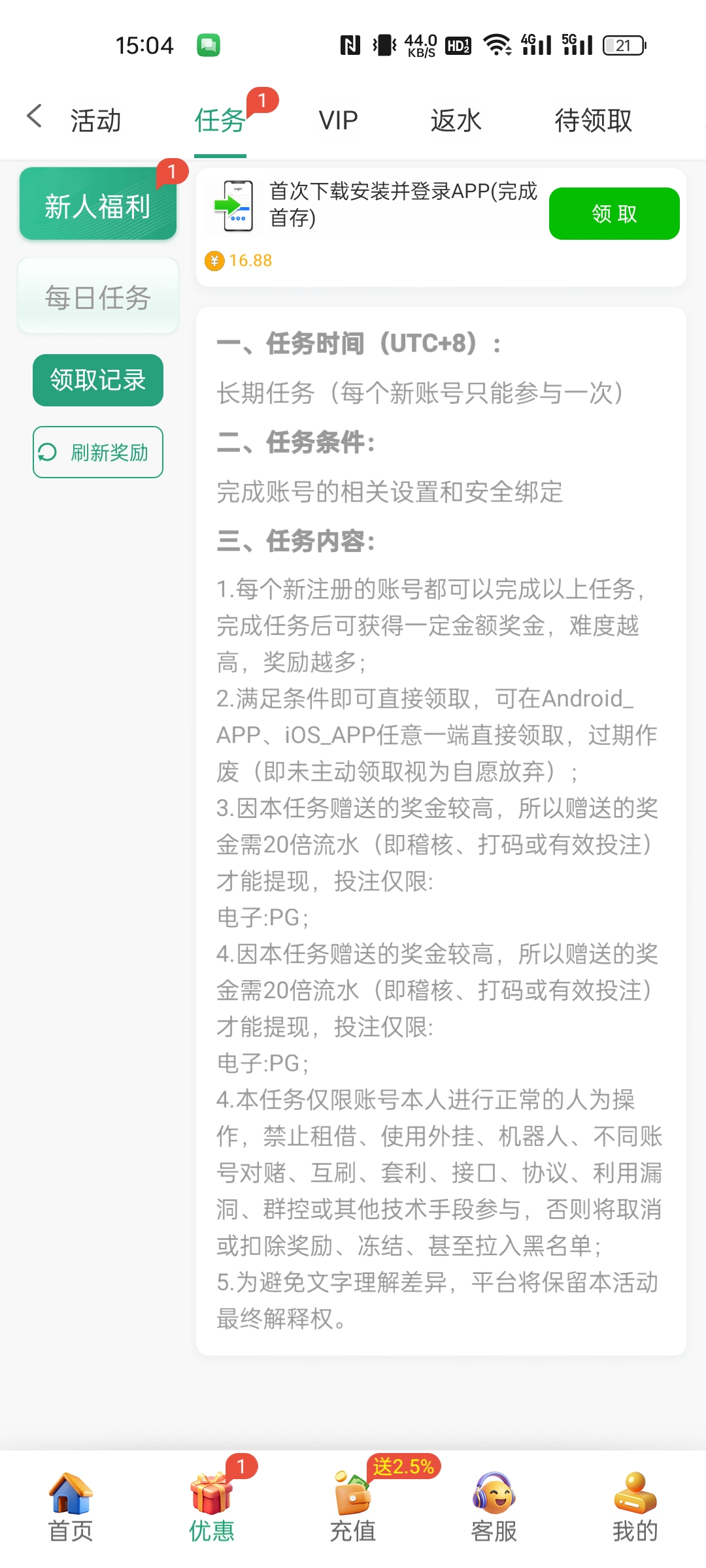 特邀送18彩金,下载app完成首存还送16.88